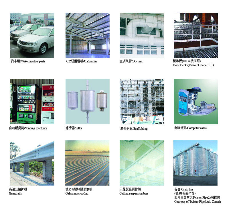 可提供良好的耐候性、附着性及成型性等优良的特性,适用于汽车组件、计算机外壳、隔间内骨、自动贩卖机、楼承板、鹰架钢管...等用途,并可作为彩涂钢板之底材。