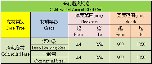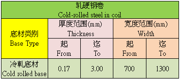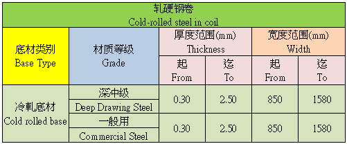 注:鍍鋅產品可生產鍍層量範圍:80~600g/m2